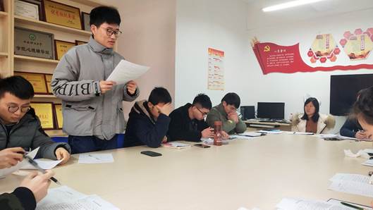 会上,支部书记同超带领全体党员共同学习了《中国共产党支部工作条例(试行)》,分别从总则、组织设置、基本任务、工作机制、组织生活、支委会建设、领导保障和附则等8个方面为大家进行了深入细致的解读。