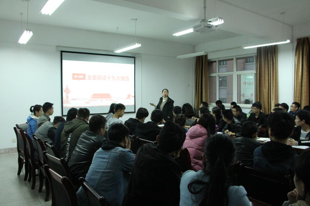 11月9日17:00,91在线 业余党校在14教319会议室首次开讲,党委副书记田园给学生第三党支部全体党员做了解读党的十九大精神报告主题党课。