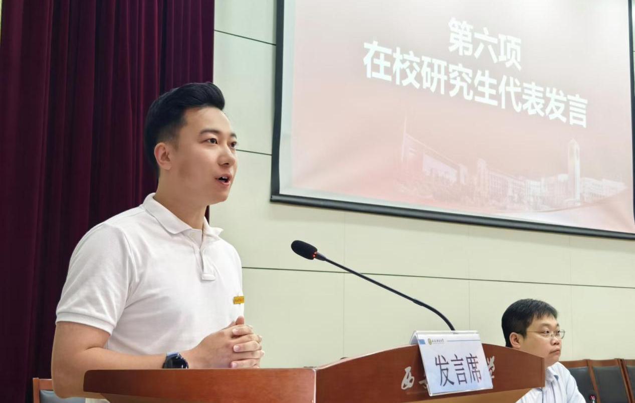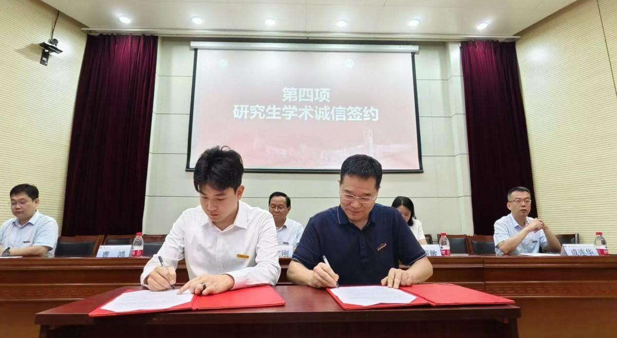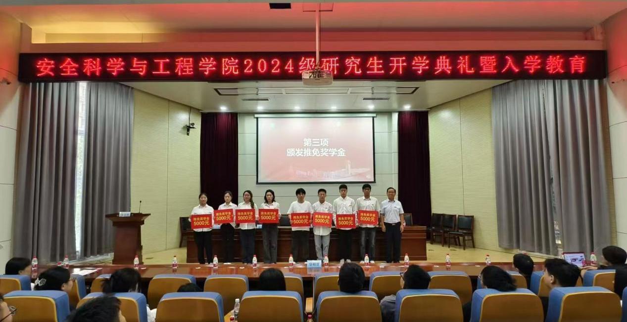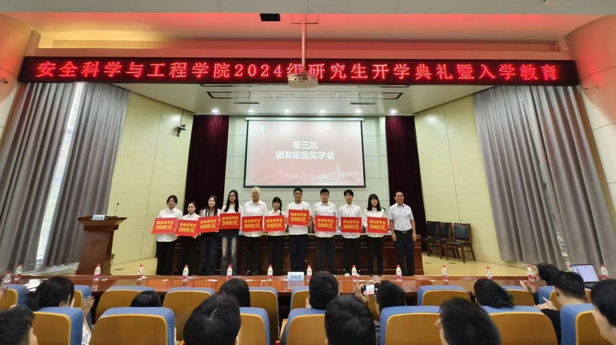 2024年推免研究生表彰文件,刘文刚为获奖的19名推荐研究生颁发了奖学金。研究生导师代表张天军、2024级研究生代表王旭东共同签约了《研究生学术诚信书》。研究生导师代表张嬿妮向2024级研究生提出三点建议:要修身养德,先学做人;要坚定理想,走自己的路;要认真生活,积极乐观。在校研究生代表黄罗鑫为2024级研究生送上三个“定力”:厚植报国定力,以强国有我的抱负投身安全事业;坚守成长定力,以脚踏实地的坚定筑牢人生根基;保持学习定力,以永不停歇的求索实现人生理想。2024级研究生代表王嘉慧向全体研究生发出倡议:要立德修身,端正心态;要明确目标,坚定方向;要夯实基础,提升素养。
