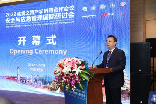 副校长邓军致欢迎辞。他指出,习近平总书记在党的二十大报告中强调,要“积极稳妥推进碳达峰碳中和”、“提升公共安全治理水平”。这既是新机遇,更是新挑战,希望以此次国际研讨会为契机,以聚为基、以质为先、以用为引,联手推进安全与应急管理国际产学研用融合发展,在交流中激发创新的火花,在合作中实现技术的突破,为“统筹发展和安全”提供更多“原动力”和“新引擎”,为提升“一带一路”公共安全治理水平贡献更多智慧和力量。