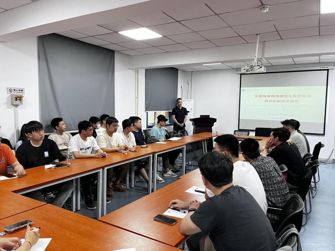 宋爽从负压驱动下钻孔瓦斯抽采预测模型研究、钻孔负压匹配特征及动态调控机制研究、瓦斯抽采智能防控系统平台的应用现状及双向联动控制技术等方面详细介绍了瓦斯抽采预测模型及实时双联动控制技术的研究进展,并结合自身求学和科研经历,从文献阅读、参与会议讲座、科研实验等方面向参会研究生提出了建议。报告结束后,参会师生表示收获颇丰,对今后的科研很有启发和借鉴意义。