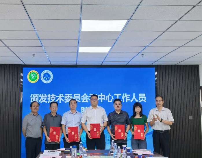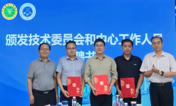 成连华宣读了煤炭行业西部矿井瓦斯智能抽采工程研究中心聘任文件。李树刚、刘文刚共同为技术委员会委员和工程研究中心常务副主任、副主任、总工程师、副总工程师颁发了聘书。