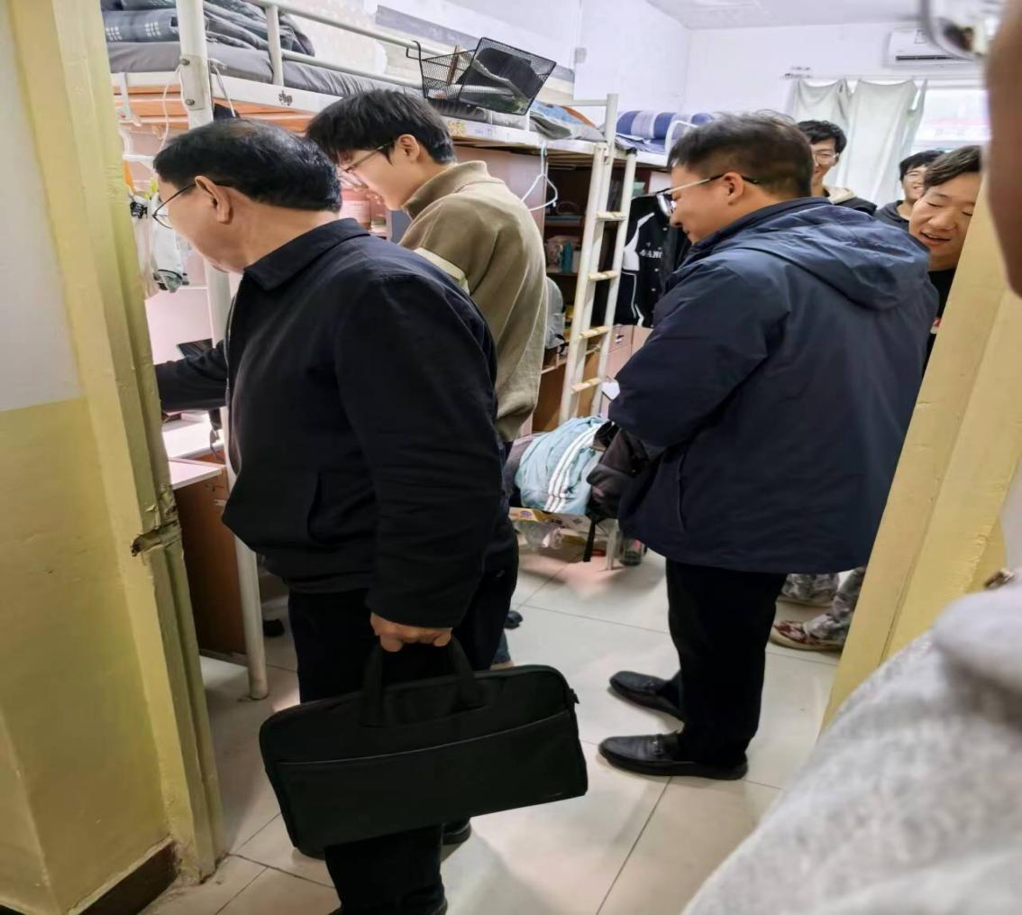 会后,刘文刚带队走访了7号学生公寓的2025级学生宿舍,认真查看宿舍的卫生状况、安全设施等,尤其关心新生大学生活的适应情况,叮嘱他们主动融入集体、合理规划学业、远离网络游戏、遵守校规校纪,争做有理想、敢担当、能吃苦、肯奋斗的新时代好青年。