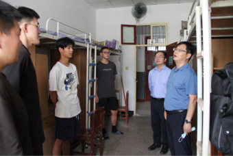 领导与同学们进行亲切交谈,了解新生饮食、住宿习惯,希望同学们能够尽快适应新环境,调整好心态,与舍友和睦相处,以饱满的精神开启大学生活。