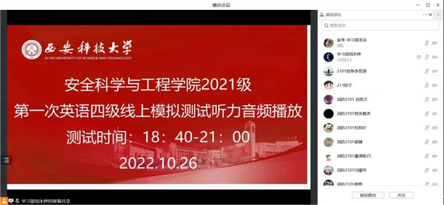 模拟考试采用腾讯会议共享屏幕形式定时发放试卷,学生纸上作答并按时拍照上传。