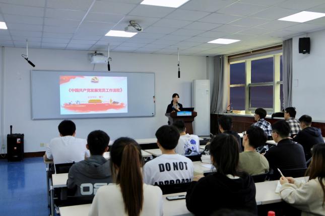 发展党员工作现状,从“申请入党”、“入党积极分子的确定和培养教育”、“发展对象的确定和考察”、“预备党员的接收”、“预备党员的教育考察和转正”等方面,对《中国共产党发展党员工作细则》进行了详细解读。他希望全体入党积极分子们在程序上认真了解,坚定理想信念,牢记党的宗旨,优化知识结构,提升综合素质,以实际行动争取加入中国共产党。