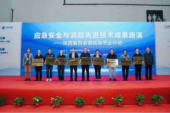 、陕西省科技报社共同承办的陕西省百会百校助千企行动——应急安全与消防先进技术成果路演活动同馆顺利举行。此前,陕西省消防协会联合我校及10家消防科技企业,共同申报并获批陕西省百会百校助千企行动——会企校企协作项目,致力于构建消防行业协会+高校+企业联合体,旨在解决行业内实际问题,展现示范效应,为消防行业的技术创新与产业链融合注入新的活力。陕西省消防协会秘书长卞建峰、我校科技处副处长卢小飞为参与项目的企业颁发了“会校企协作单位”牌匾。