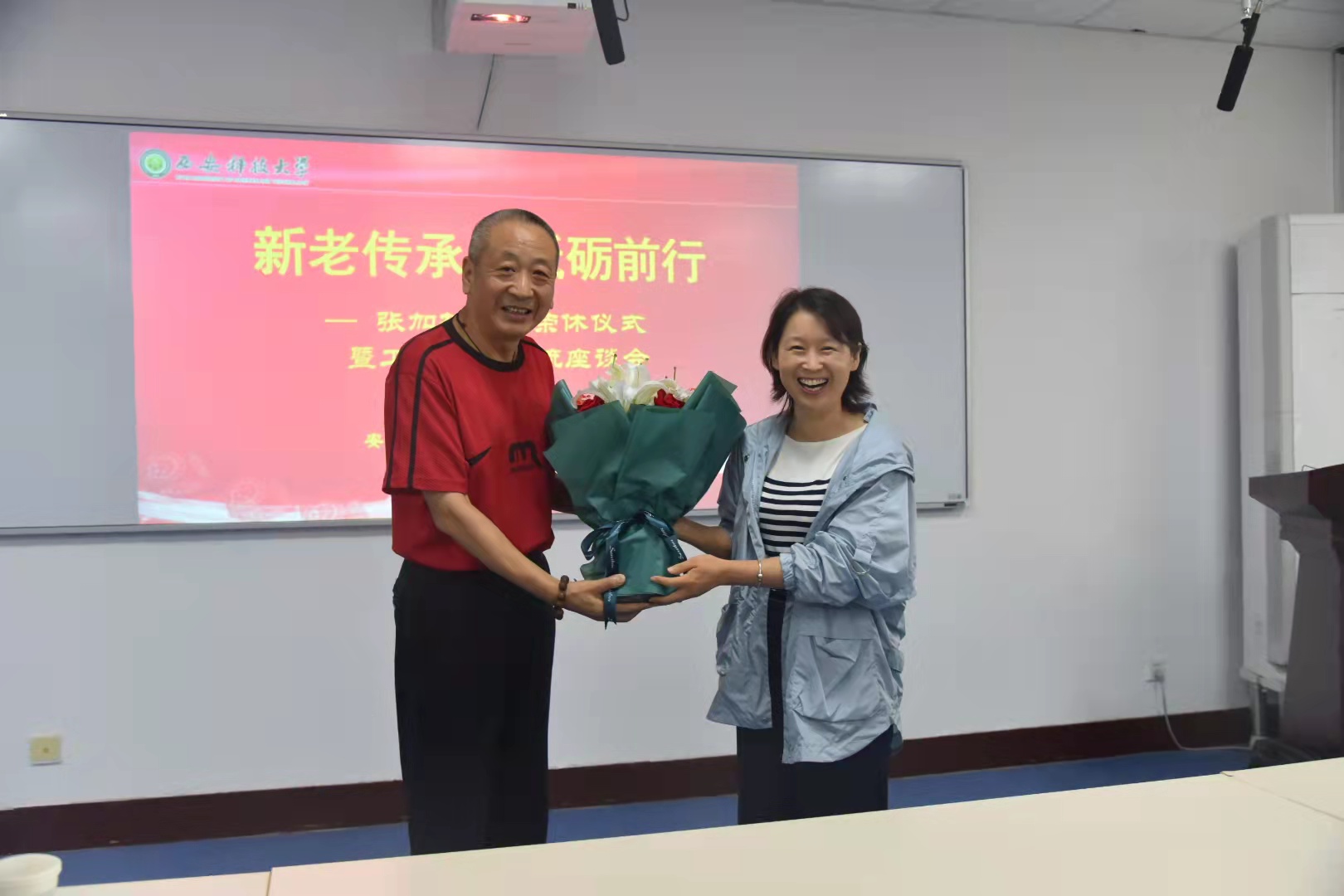 在临潼校区14教504教室举办“新老传承 砥砺前行”—张加林老师荣休仪式暨工作经验交流会。91在线