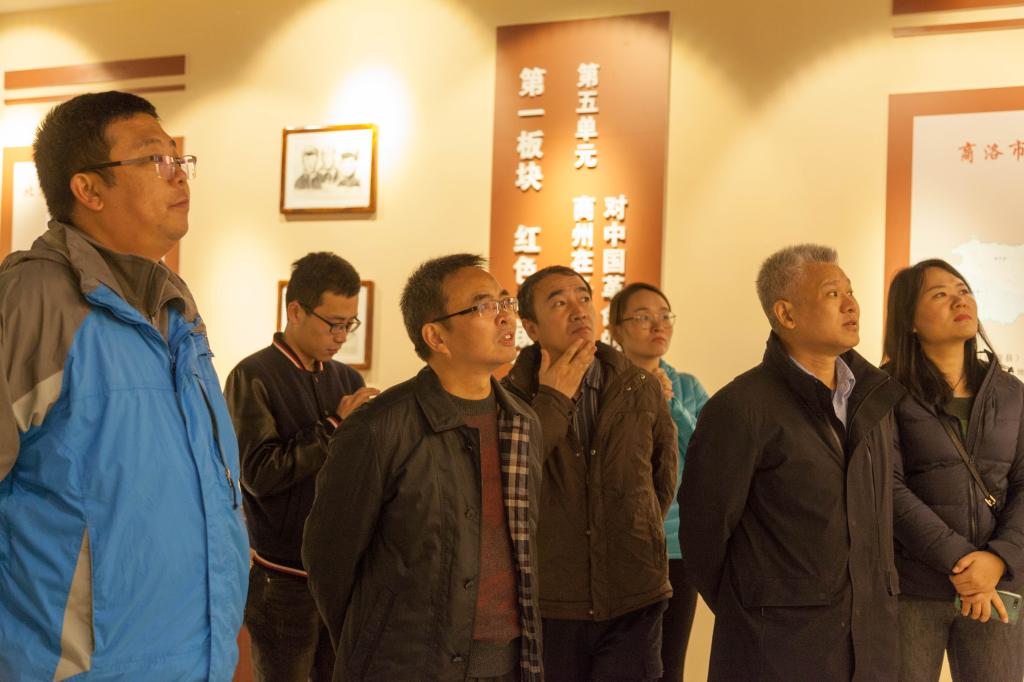 一行人怀着崇敬的心情首先参观了商洛县委县政府旧址纪念馆。随后在纪念馆门前,开展了重温入党誓词活动,在鲜红的党旗下,全体党员举起右手、握紧拳头,在领誓人杜勇同志的带领下庄严宣誓。随后,大家来到商州区干部红色教育基地,参观了3个展室,仔细观看每一件展品、每一幅图片。通过参观学习了解到商洛县委县政府是解放战争中我党建立较早影响最大的一个县级政权,由李先念同志主持创建,以及中原突围、豫鄂陕边区党委扩大会、商洛民主政府成立等重大革命历史事件。