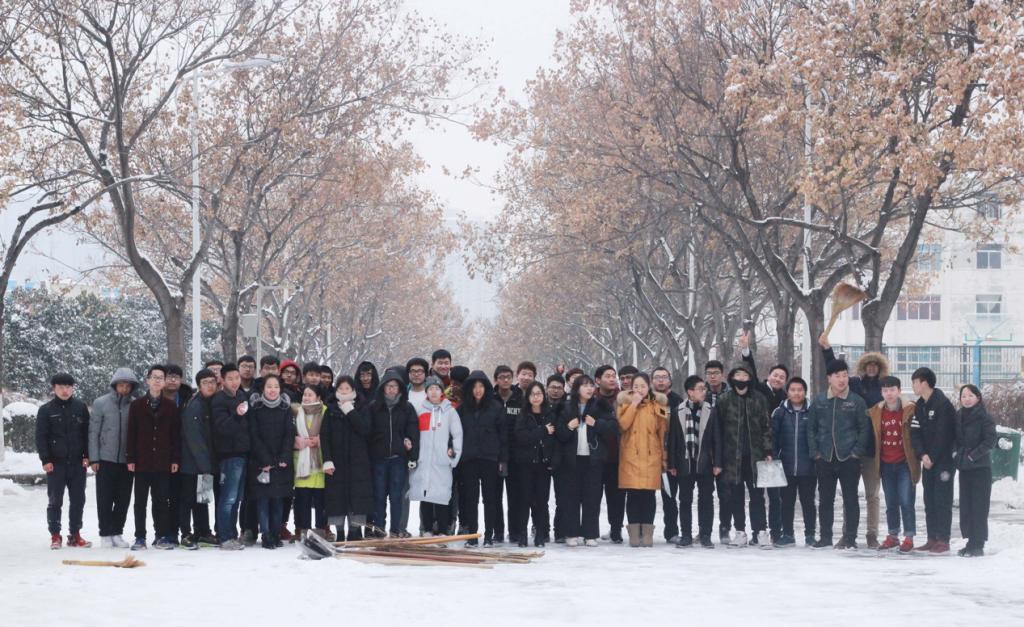 研究生党员和积极分子在党委书记杜勇、副书记田园以及辅导员王倩的带领下对卫生责任区以及主干道上的积雪进行了清理。