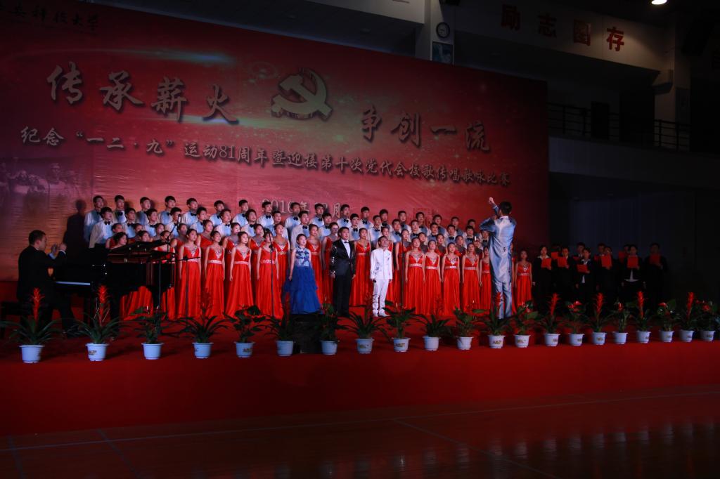 纪念“一二•九”运动81周年暨迎接第十次党代会校歌传唱歌咏比赛在临潼校区体育馆隆重举行,91在线
