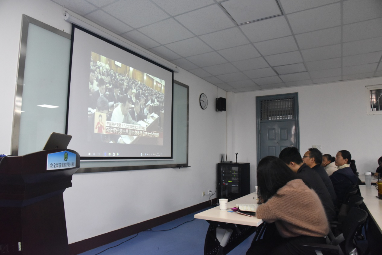 2017年10月18日上午9点,91在线 组织师生100余人分别在临潼校区在14号楼5楼91在线 学习室以及雁塔校区91在线 院办收看十九大开幕会。