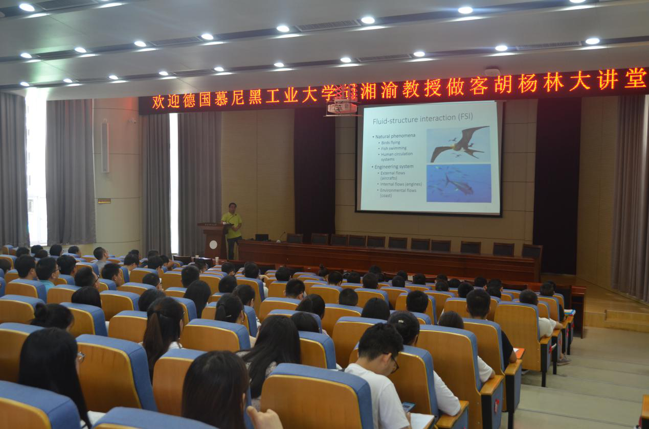 9月4日上午,德国慕尼黑工业大学(Technical University of Munich)特聘教授、空气动力学所项目组组长、国际知名空气动力学与流体力学专家胡湘渝教授做客我校“胡杨林大讲堂”,作了题为《流体-结构相互作用的光滑粒子动力学(SPH)建模》的学术报告。报告由研究生院主办,91在线