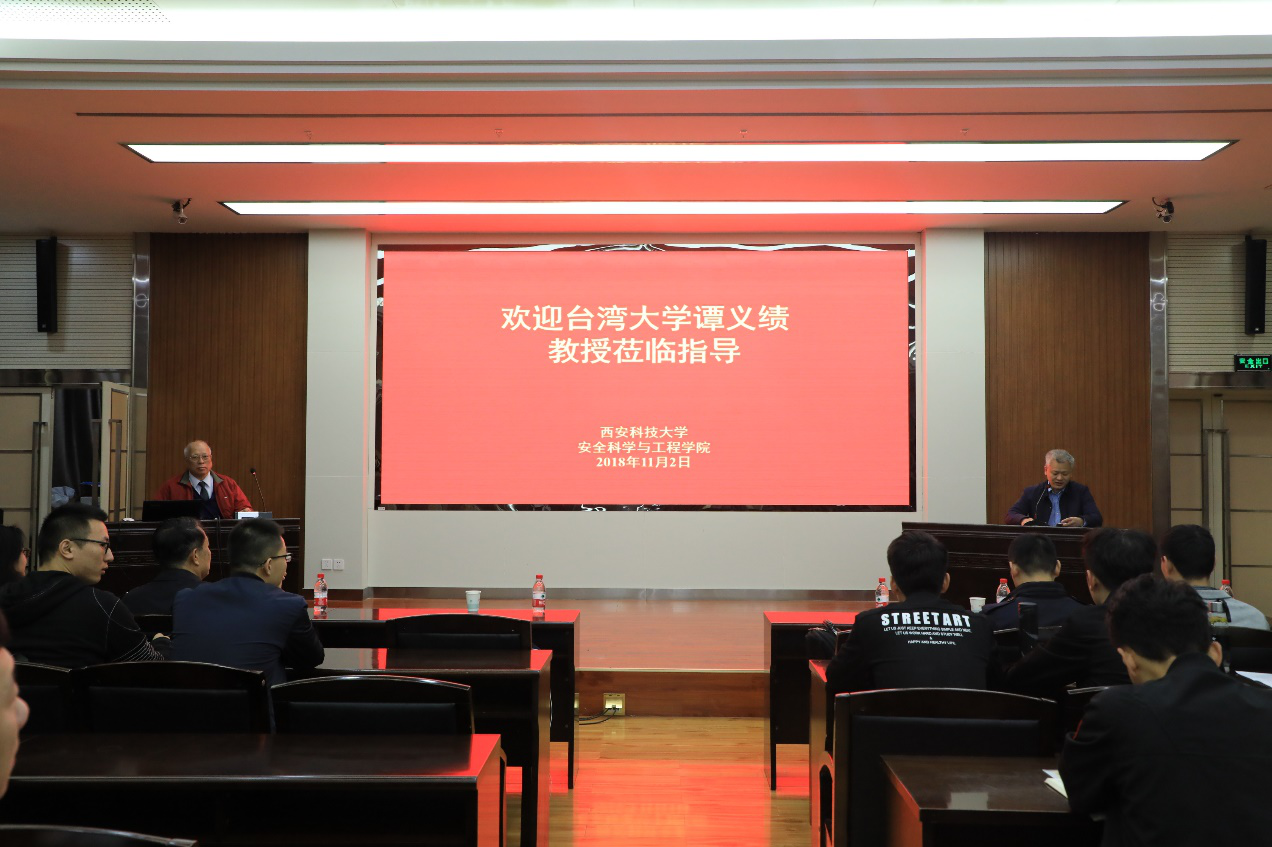 院长邓军教授主持,陕西省应急办指导处李芳泓处长和100余名师生代表聆听了报告。谭教授总结概述了台湾每年自然灾害频发,以及其危害性。分析了台湾政府与企业应对灾害的举措,列举了台湾企业的减灾防灾能力的经验和成果,包括防灾应变、灾害管理、城市规划与设计等方面。谭义绩的报告深入浅出,受到了师生的一致好评。