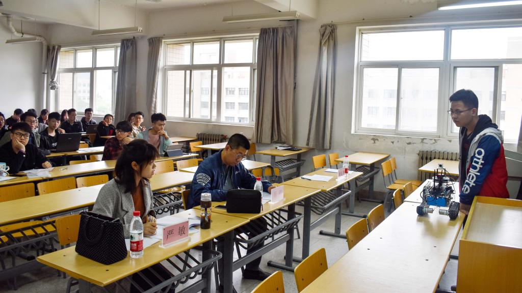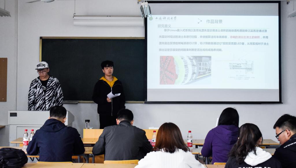 初赛答辩分为作品介绍、评委老师提问两个环节。各小组负责人围绕作品的科学性、创新型、可行性、实用性等进行阐述。评委老师在认真听取各组负责人的汇报讲解后,对各组提出了合理的建议和意见。