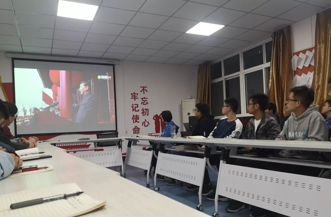 2016级、2018级本科生党支部在骊山校园14-319会议室召开党员大会进行“不忘初心 牢记使命”主题教育集中学习活动,重点学习习近平总书记在庆祝中华人民共和国成立70周年大会上的重要讲话精神,党支部全体成员参加了会议。
