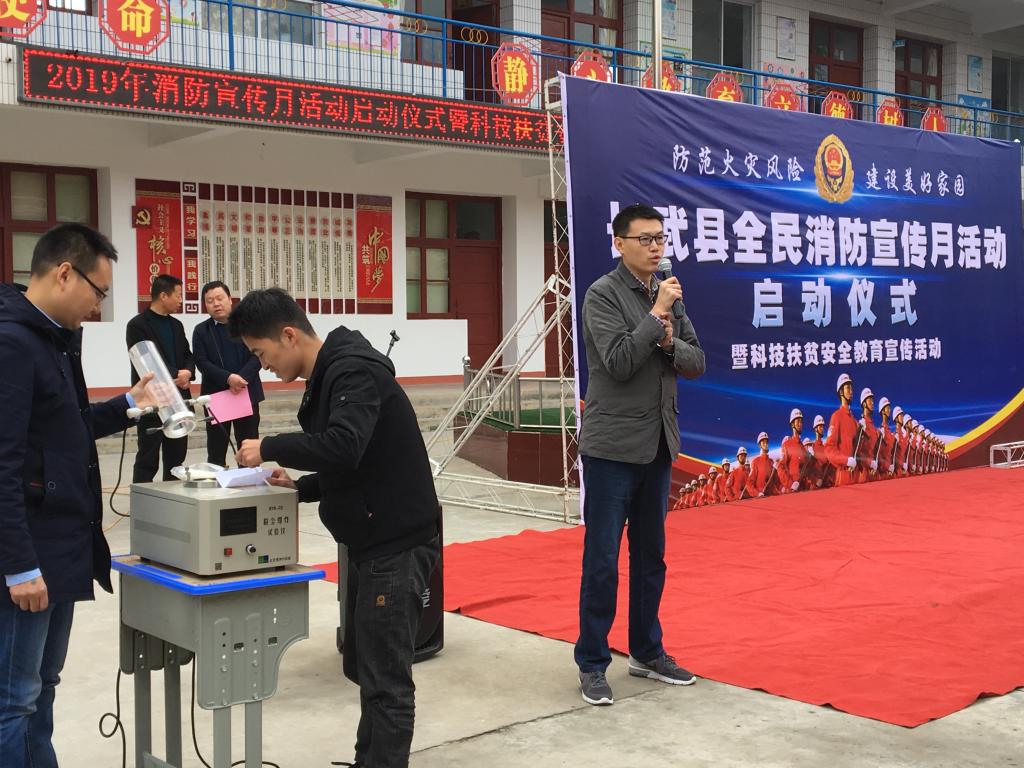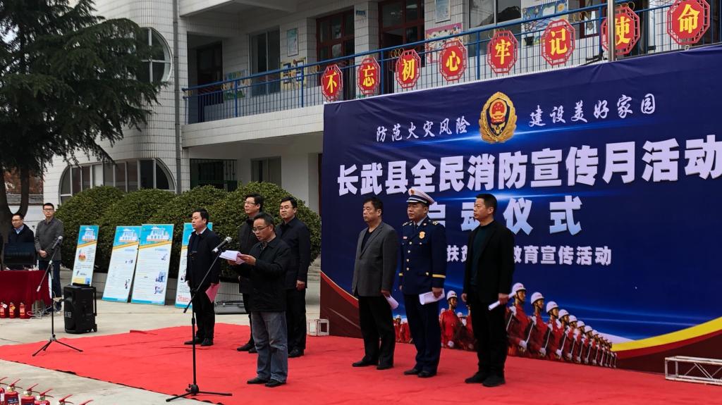 与长武县消防大队共同组织的“长武县消防宣传月启动仪式暨科技扶贫安全教育宣传活动”在长武县丁家镇中心小学举行。长武副县长、县公安局局长符信用,91在线