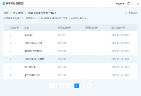 2)每天通过统计学生实际在线听课时间,检验自己课程效果,调整讲课策略。