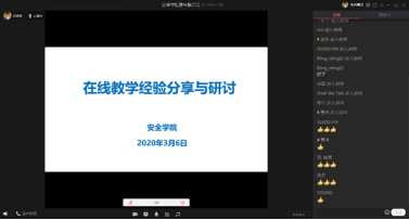 为贯彻落实中省关于疫情防控期间“停课不停学”的要求,提升青年教师网上教学质量,提升青年教师的信息化教育教学能力,安全工程系双带头人党支部于3月6日晚19:30-21:30线上开展了在线教学方式经验分享与交流专题会,安全工程系主任王莉、组织委员王凯、安全工程系教师王延平和秦雷四位同志作专题报告。基于两周线上教学总结,几位老师通过在线演示分别介绍了超星、雨课堂、中国大学MOOC平台、学堂在线、腾讯课堂与QQ群课堂等教学方式的特点,从课程定位、学情分析、教学内容、教学效果与反馈、教学方式优选组合等方面分享了混合式在线教学经验,共享了各自的教学设计和授课预案,解读了在线教学过程中遇到的问题和应对措施。专题报告中,教师们进行了广泛地在线交流与互动。
