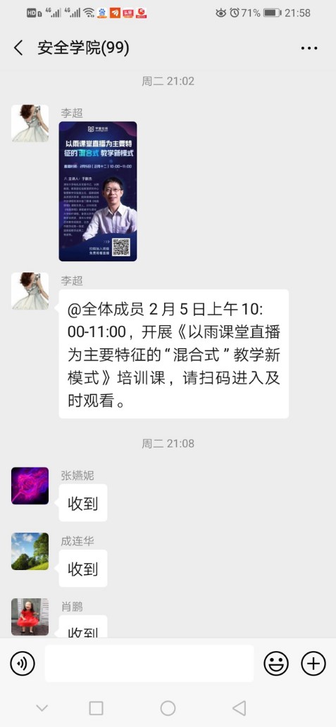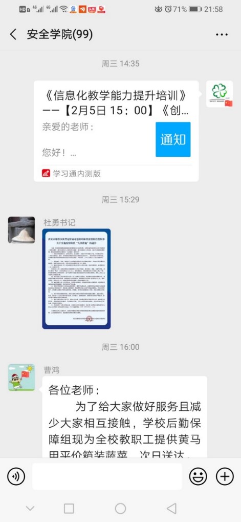 在开学前3周便紧锣密鼓筹备线上教学工作,为各位任课教师推送各类教学平台和直播工具使用培训链接,并多次征求各一线教师线上平台操作技术问题,及时与平台管理员沟通反馈,协助任课教师结合课程属性选择合适的线上教学平台开展教学活动。