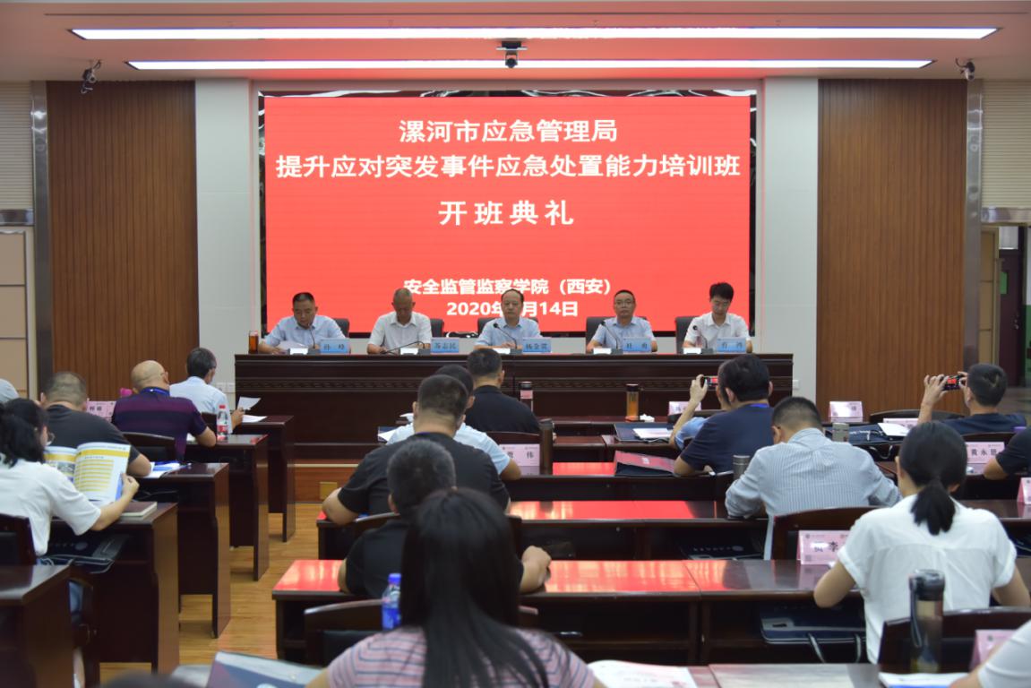 (西安)党委书记杜勇、副院长曹鸿以及来自漯河市应急管理系统的51名学员参加了开班式,开班式由孙峰主持。
