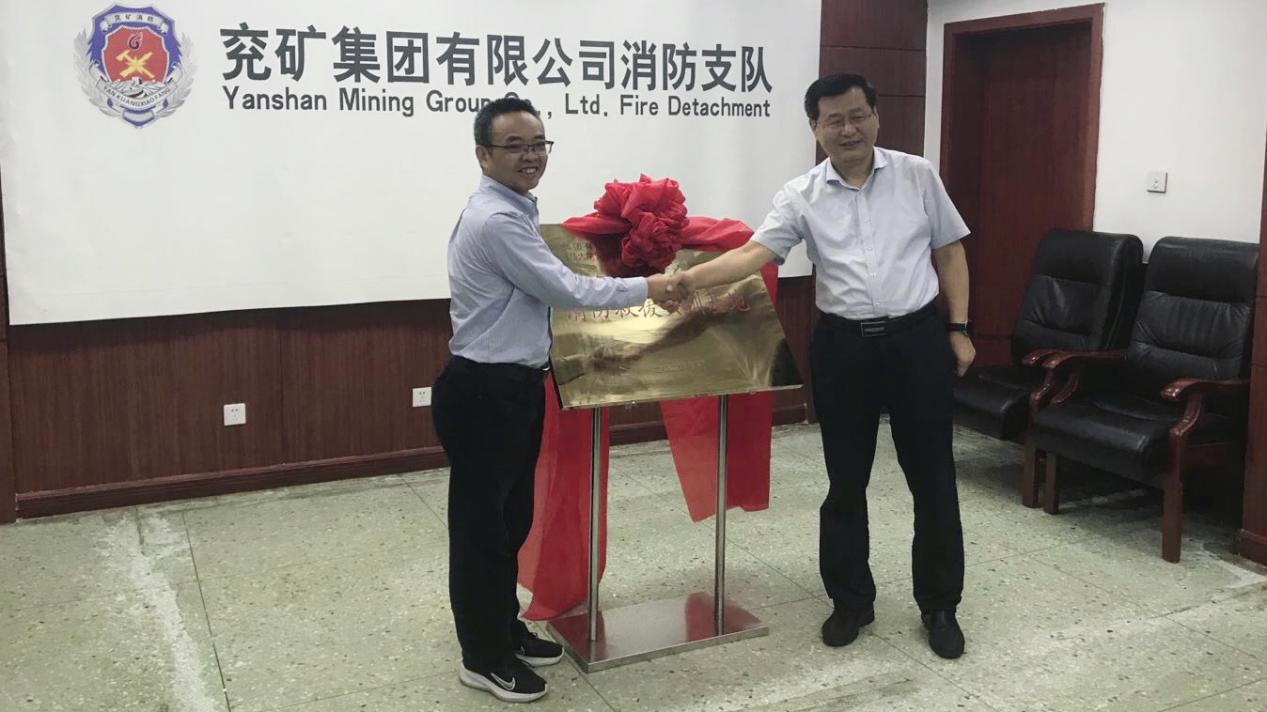 与兖矿集团消防支队共建消防救援实训基地的签字暨揭牌仪式在兖矿集团消防支队举行,兖矿东华集团有限公司党委书记苗素军、兖矿集团有限公司安全保卫中心主任于峰、山东兖矿保安服务有限公司总经理盛斌、兖矿集团消防支队支队长崔蕾及支队班子成员,91在线