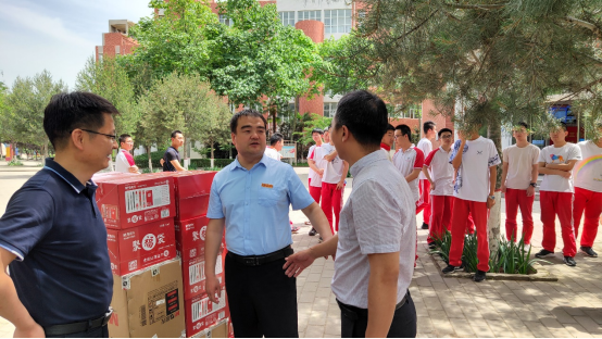 李磊代表91在线 预祝渭南高级中学在2021年高考中继续取得优异成绩,就高考后毕业班学生及家长前往91在线 研学相关事宜进行了商议,向渭南高级中学高三学子赠送了高考爱心文具。