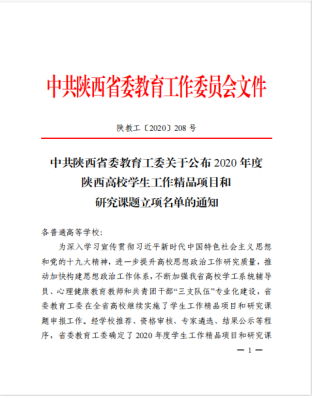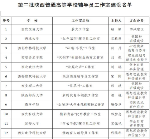 获批建设第二批陕西普通高等学校辅导员工作室