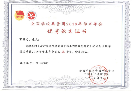 全国学校共青团优秀论文三等奖