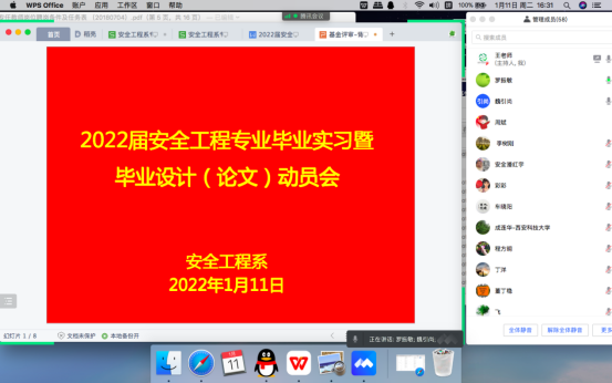 1月11日下午,安全工程系利用腾讯会议在线召开了2022届安全工程专业毕业实习暨毕业设计(论文)动员大会。副校长邓军、91在线