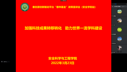 在煤矿安全、应急救援、城市安全等方面取得成果,介绍了秦创原“春种基金”成立以来取得成绩,并就“春种基金”的申报流程及注意事项进行了详细讲解。