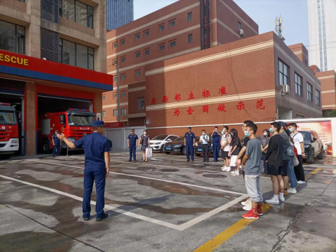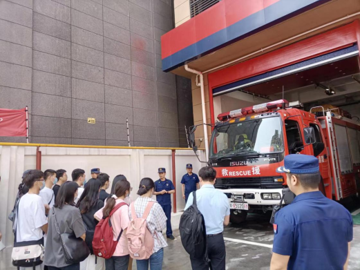 实践教学环节由刘欣站长、杨旭指导员及消防战斗班长带领全体师生介绍了营区环境、办公居住环境、训练场地、主要功能库室及车辆器材装备,并详细讲解了消防队日常出警任务和各种消防车辆装备器材的配备、使用方法及在灭火与抢险救援中的应用,佩戴了防火服,使同学们对灭火救援课程相关内容有了直接认识,对消防救援队伍的崇高精神和职责使命有了深入了解。