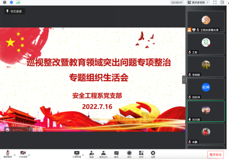 安全工程系党支部召开巡视整改暨教育领域突出问题专项整治专题组织生活会。校党委书记蒋林全程参加并指导,91在线