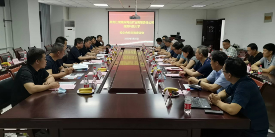邓军副校长代表学校对双矿公司各位领导来访表示了欢迎,介绍了学校基本情况,并对双矿公司长期以来对学校事业发展的支持表示感谢。陈贵林总工程师介绍了双矿公司基本情况、发展历史、产业布局,说明了此行目的,高度肯定了校企双方合作的成果,希望进一步加强与我校多维度深层次合作,为夯实双矿公司矿井安全根基、着力打造现代化煤炭企业发挥重要作用。