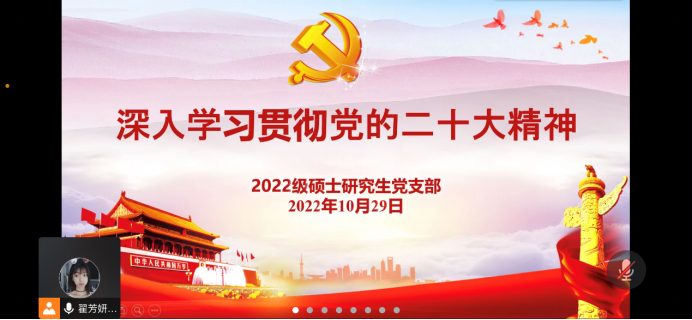 2022级硕士研究生党支部通过腾讯会议,组织全体党员学习党的二十大精神。会议由支部书记翟芳妍主持。