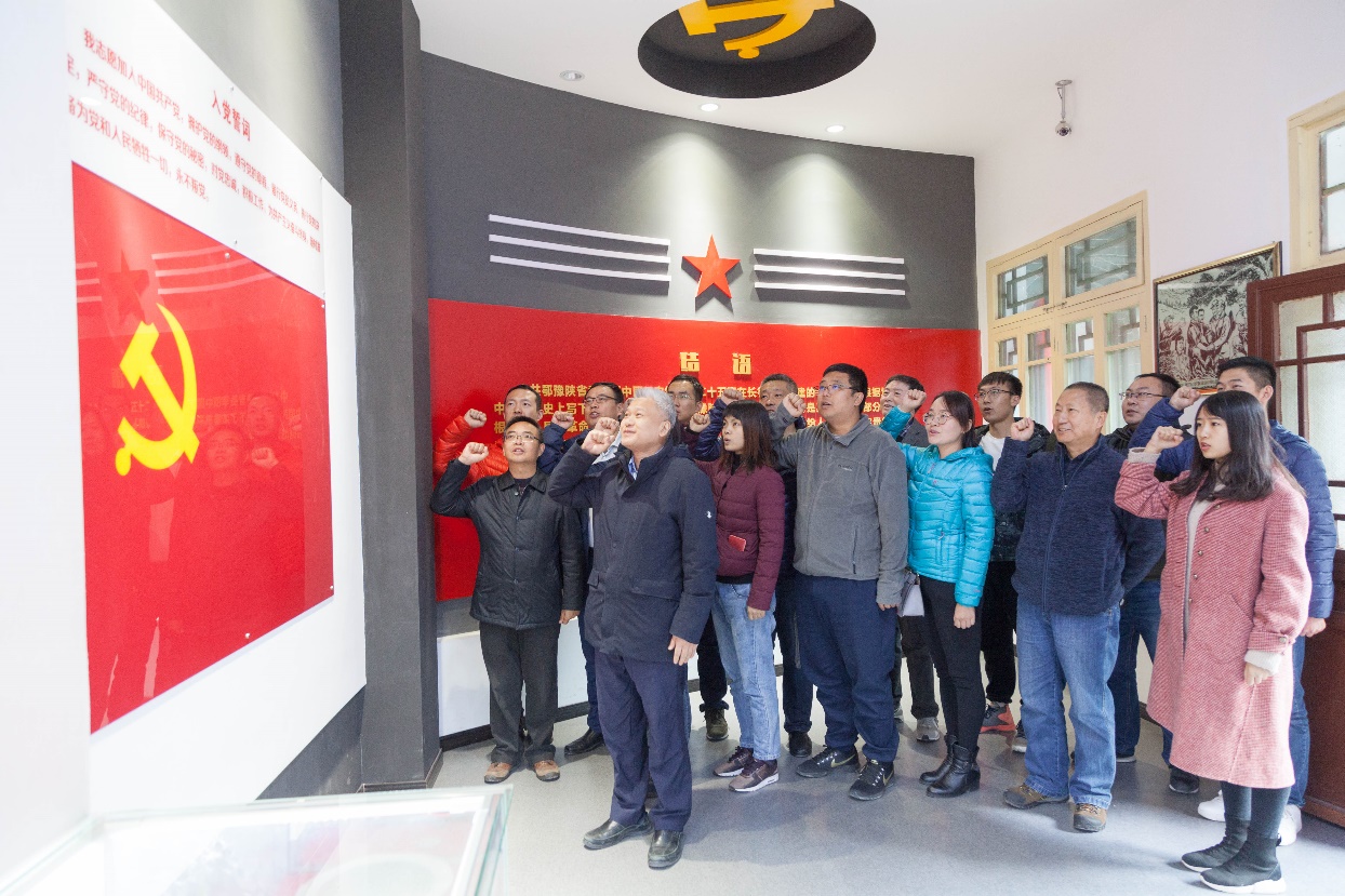 一行人怀着崇敬的心情首先参观了商洛县委县政府旧址纪念馆。随后在纪念馆门前,开展了重温入党誓词活动,在鲜红的党旗下,全体党员举起右手、握紧拳头,在领誓人杜勇同志的带领下庄严宣誓。随后,大家来到商州区干部红色教育基地,参观了3个展室,仔细观看每一件展品、每一幅图片。通过参观学习了解到商洛县委县政府是解放战争中我党建立较早影响最大的一个县级政权,由李先念同志主持创建,以及中原突围、豫鄂陕边区党委扩大会、商洛民主政府成立等重大革命历史事件。