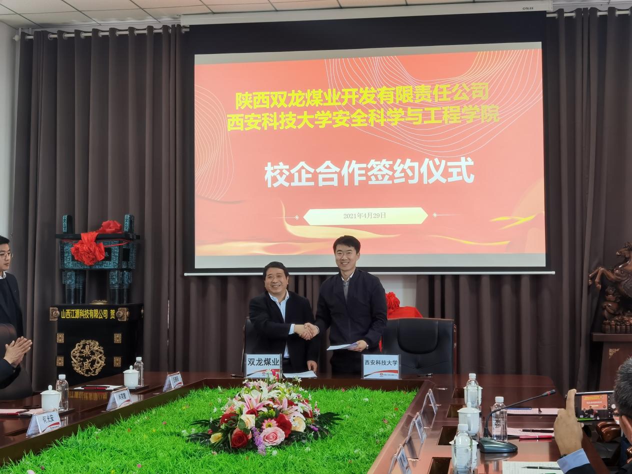 与陕西双龙煤业开发有限责任公司校企合作签约仪式在双龙煤业举行。双龙煤业党委书记丁连水、财务总监董文治、总工程师何光安、副总经济师马翔、副总工程师尚英智、副总经济师苏忍科、副总政工师王晓阳和校友代表孙练,91在线