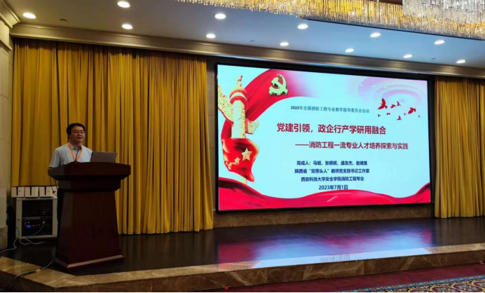 马砺受邀作“党建引领,政企行产学研用融合——消防工程一流专业人才培养探索与实践”的主题经验交流,分别从消防工程系党支部建设现状、党建引领师德师风、党建引领人才培养、党建引领社会服务和党建引领文化传承等方面,详细介绍了我校消防工程专业人才培养和专业建设的特色做法。