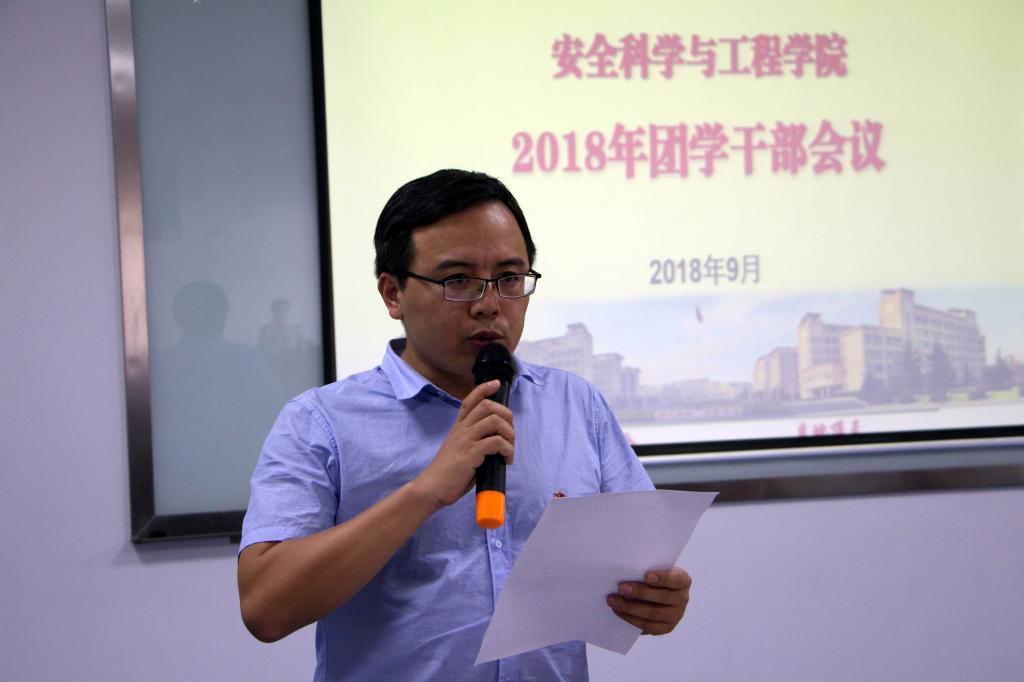 党委书记杜勇在讲话中对团学干部贯彻学习习近平新时代中国特色社会主义思想带领全院学生取得的成绩表示肯定;结合学校“一流大学一流学科”建设大会上蒋林校长对安全学科发展的要求提出四点希望:希望学生干部能努力学习练就过硬本领;希望学生干部能主动思考勇于创新创造;希望学生干部深入领会习近平总书记对广大青年提出的希望与要求,积极奉献做好青年友、不做青年“官”;希望学生干部能严于律己以身作则做好学生榜样,为创建在国内一流的研究教学性91在线