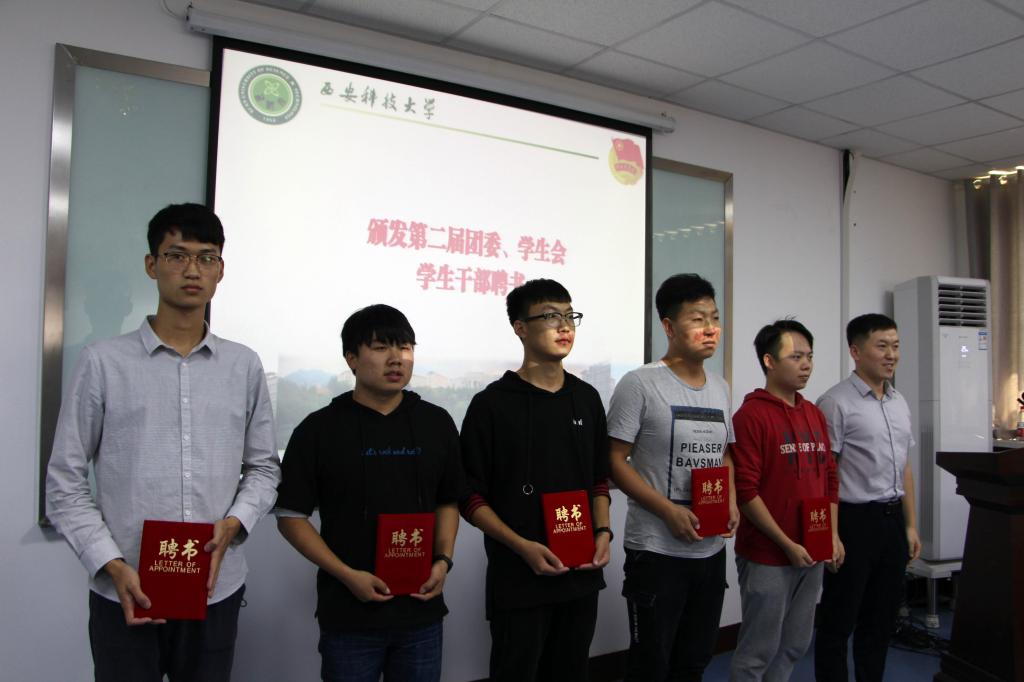 团委委员、辅导员王倩、同超、袁刚分别为第二届学生干部颁发聘书;团委副书记、研究生辅导员曹月宣布第三届团委、学生会主要学生干部任职名单;第三届学生会主席安星虣代表全体学生干部作表态发言。